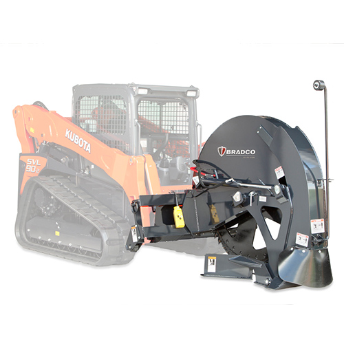 Máy cưa đá Bradco của Paladin được trang bị tính năng sang số bên và điều chỉnh độ cao được điều khiển bằng điện từ ghế của người điều khiển.